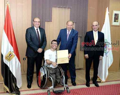 كما تكريم الطالب عادل شباب عوض، الطالب بكلية التجارة، لاعب منتخب مصر من ذوى الهمم للكاراتيه، لفوزه بالمركز الثالث والميدالية البرونزية خلال المنافسات النهائية لبطولة العالم المقامة في بودابست بالمجر.