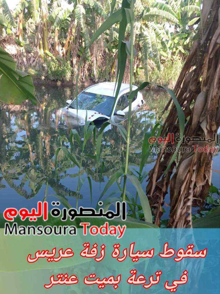 تحولت لحظات الفرح في اجمل ليالي العمر الي حزن وبكاء عندما انقلبت سيارة زفاف عروسين باحدي الترع بالدقهلية