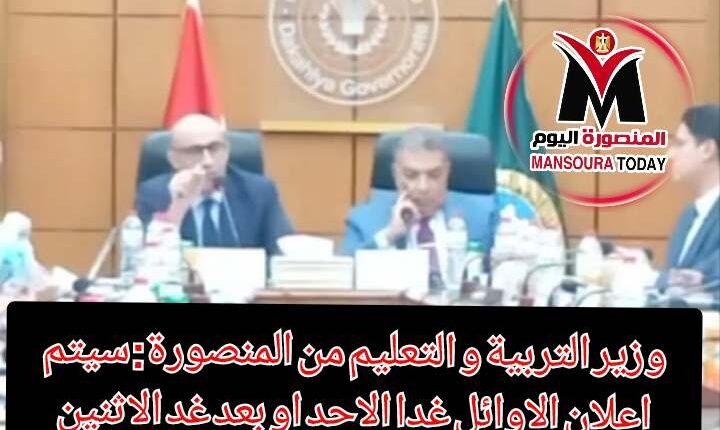 صرح الدكتور محمد عبد اللطيف وزير التربية والتعليم انه سيتم اعلان اوائل الثانوية العامه غدا الاحد او بعد غد الاثنين يعقب ذلك اعلان كل النتائج.