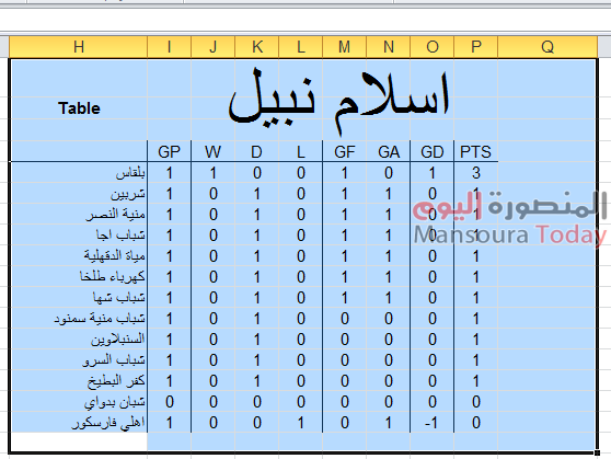 يتصدر بذلك بلقاس جدول الدوري برصيد ٣ نقاط ويقبع اهلي فارسكور في المركز الأخير بدون رصيد من النقاط