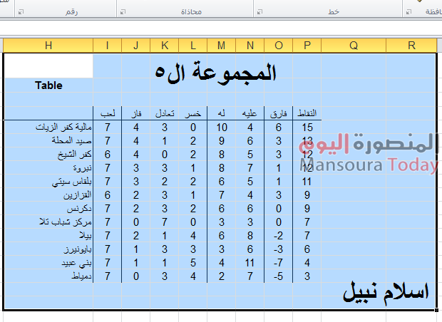 يحتل صاحب الأرض قمة الجدول برصيد ١٥ نقطه بينما يحتل بيلا المركز التاسع برصيد ٧ نقاط