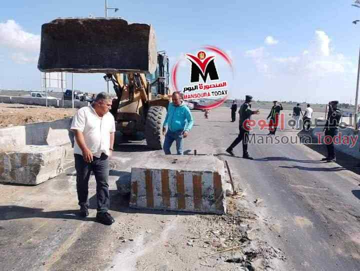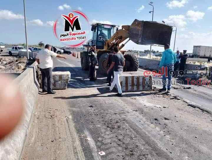 وعلى الفور تم وضع حواجز خرسانية بطول الطريق بالمراكز الثلاثة ،المطرية والجمالية والمنزلة منعا لمرور النقل الثقيل .