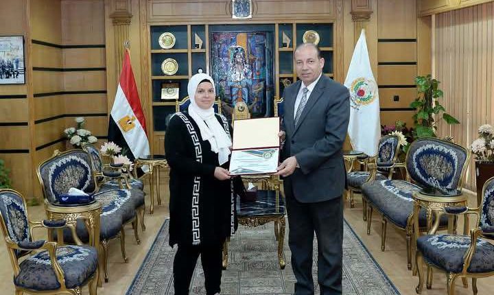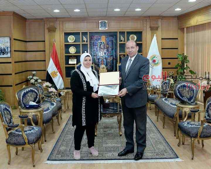 رئيس جامعة المنصورة يُكرِّم معاونة خدمة بكلية التمريض لأمانتها