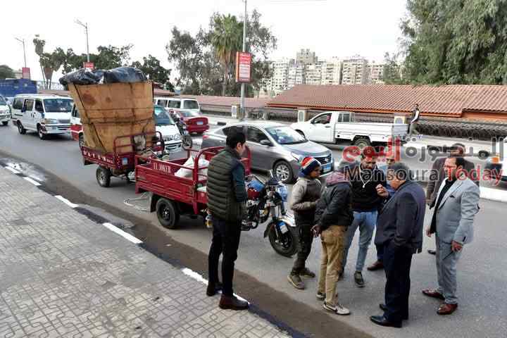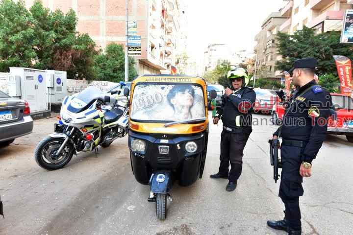 أثناء تفقد المحافظ للشوارع استوقف توكتوك بمدينة طلخا بسبب الازعاج الذي يسببه باستخدام سماعات الصوت العالي وأمر بتسليمه على الفور لإدارة المرور وشدد على اتخاذ الإجراءات القانونية اللازمة، وعدم التصريح بخروجه إلا بأمر مباشر منه، كما استوقف تريسكل لأحد النباشين بشارع الجمهورية وكلف بتسليمه لحي غرب المنصورة لإتخاذ ما يلزم ودمجه في منظومة النظافة بالحي في إطار رسمي ليعمل من خلال الحي.