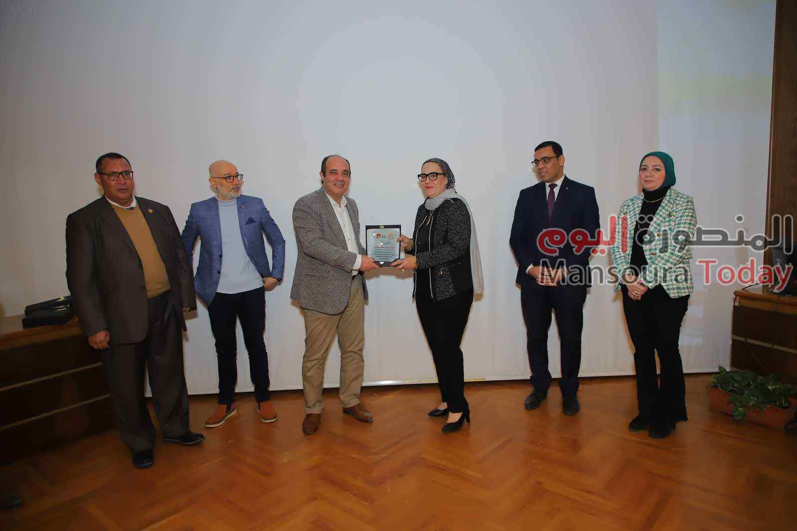 المستشار/ أحمد رجائي مدير مديرية العمل بمحافظة الدقهلية والدكتور/ ماجد السيد محمد رئيس الإدارة المركزية لإقليم شمال الدلتا جهاز شئون البيئة الدكتور/ أبوالفتوح حسن أبوالفتوح مدير إدارة السلامة والصحة المهنية وتامين بيئة العمل بالجامعة والأستاذ الدكتور/ داليا السيد الإتربي مركز الخدمة العامة للسلامة والصحة المهنية والسيدة ك/ رحاب السيد النوبي مدير عام الإدارة العامة البيئة