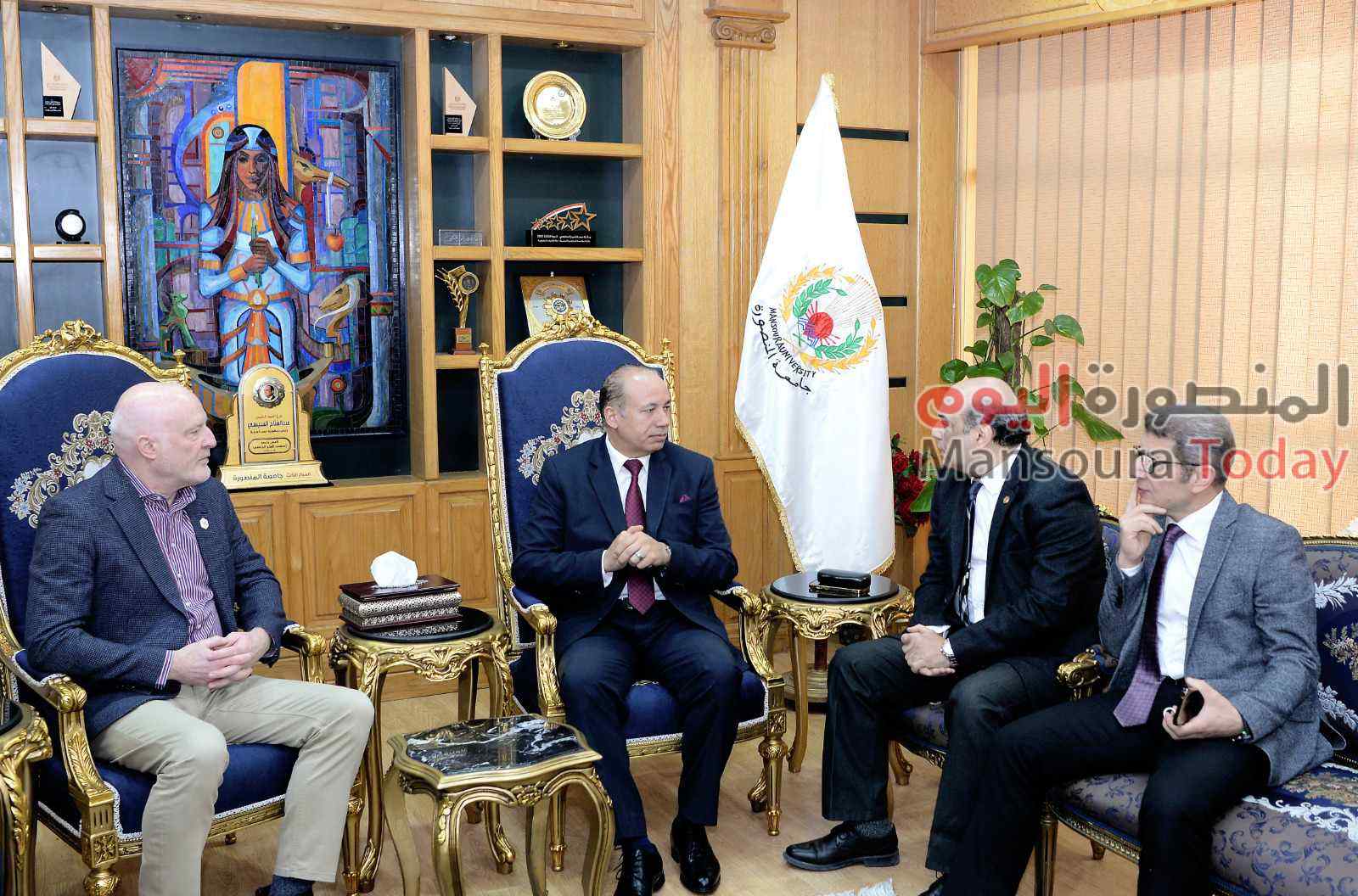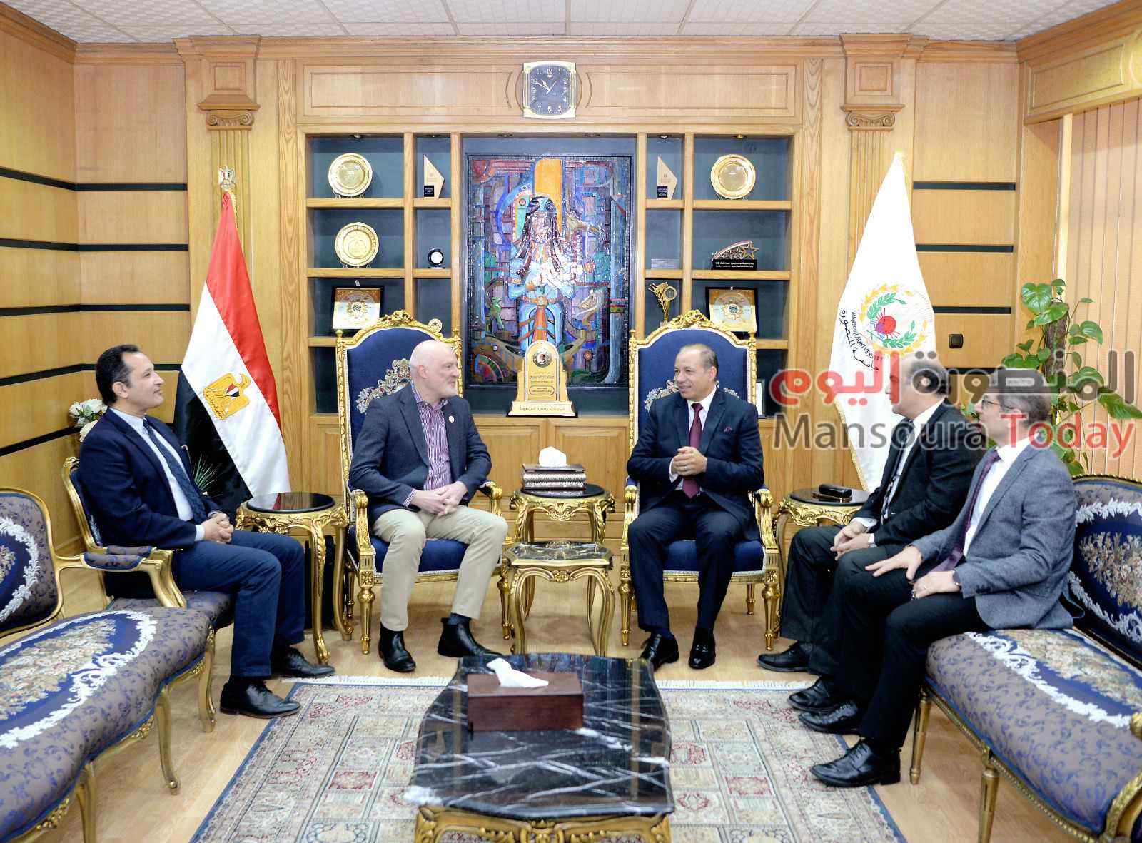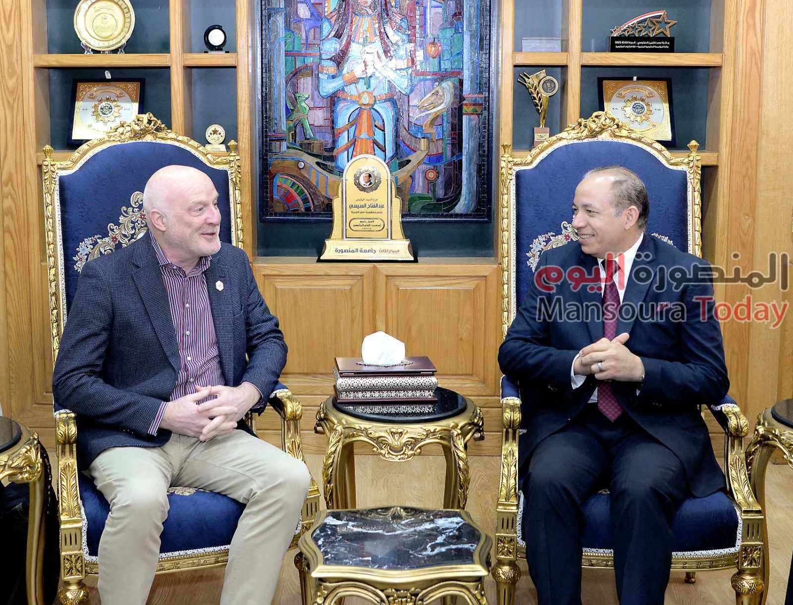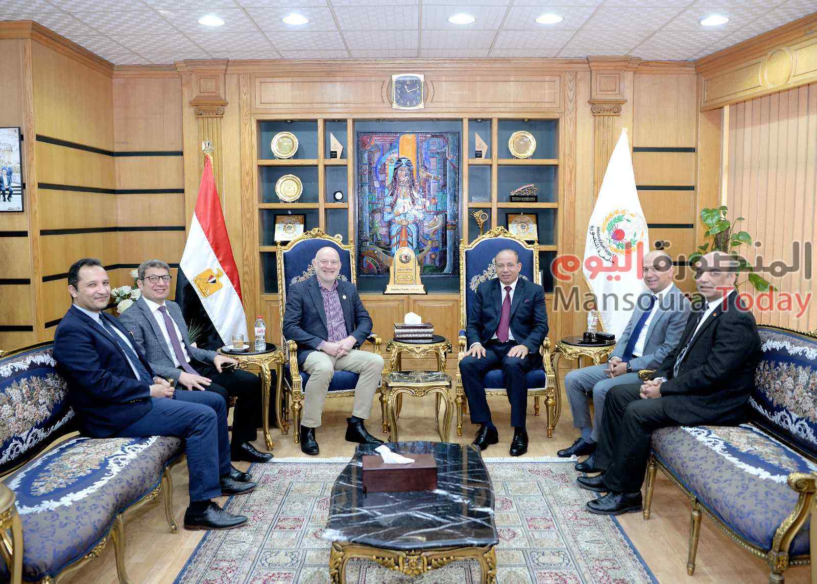 خاطر يستقبل نائب رئيس جامعة مانشستر خلال زيارته لطب المنصورة