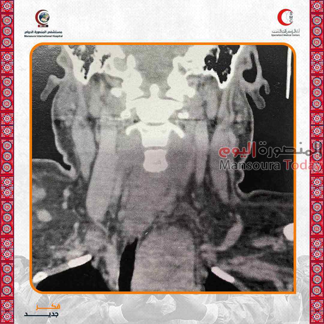 شهدت مستشفى المنصورة الدولي إجراء عملية جراحية دقيقة ونادرة تُجرى لأول مرة داخل المستشفى لاستئصال غدة درقية متضخمة امتدت إلى تجويف الصدر وكانت ملاصقة للقلب والأوعية الدموية الكبرى مما تسبب للمريضة في صعوبة مستمرة بالتنفس.