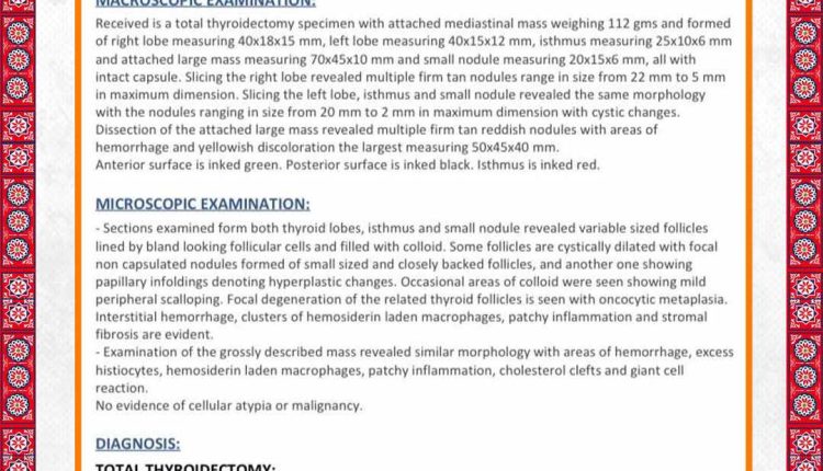 استغرقت العملية أربع ساعات متواصلة وتم خلالها استئصال كامل للغدة الدرقية عبر فتح الرقبة وشق الصدر دون حدوث نزيف أو الحاجة لنقل دم ودون أي مضاعفات مع الحفاظ التام على صوت المريضة وسلامتها الصحية.