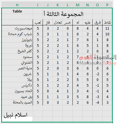 بينما تجمد رصيد نبروة للنقطه ٨ في المركز الرابع