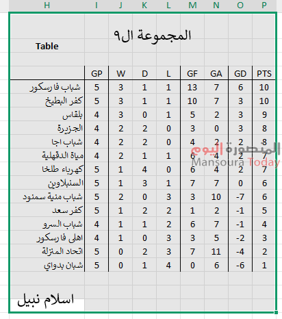 أقيمت عصر اليوم السبت مباريات الجولة الخامسة للمجموعة التاسعه الدقهليه ودمياط باربع مباريات أسفرت نتائجها على
