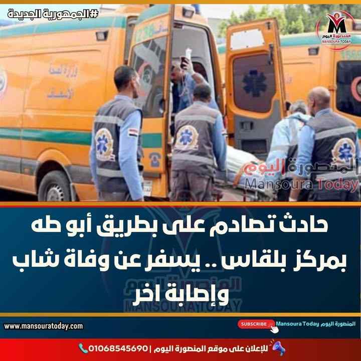 شهد طريق أبو طه التابع لمركز بلقاس بمحافظة الدقهلية اليوم حادث تصادم بين دراجة نارية وعربة كارو، مما أسفر عن وفاة شاب وإصابة آخر