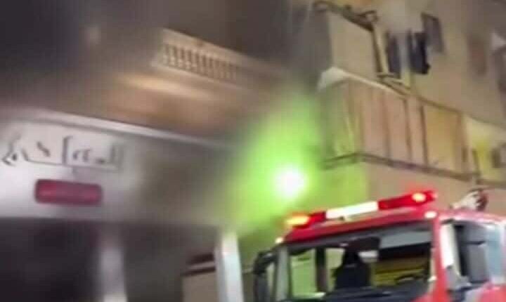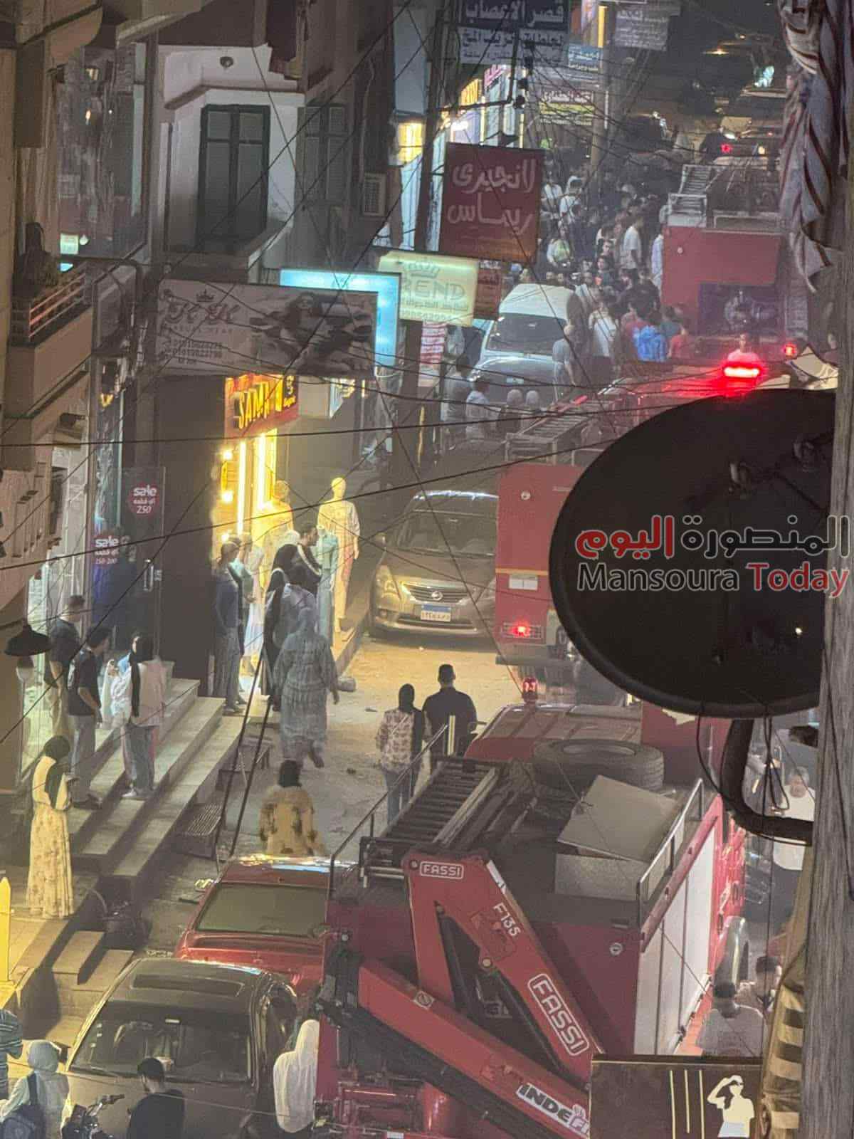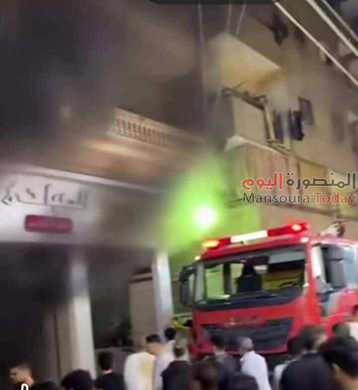 نشب حريق بمخزن ملابس بالدور الارضي بعمارة سكنيه من خمس طوابق بشارع منتصر المتفرع من شارع الجلاء بمدينة المنصورة .
