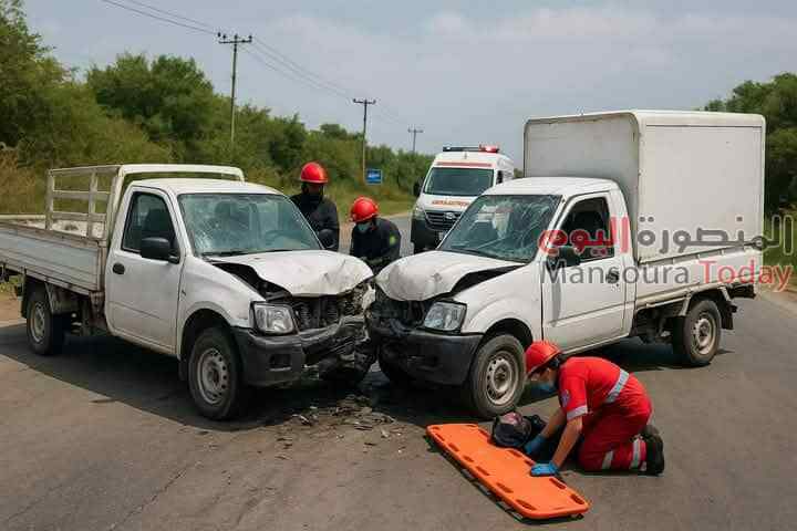 تلقي اللواء مدير امن الدقهلية أخطارا من رئيس المباحث الجنائية بورود بلاغ من مركز شرطة اجا بوقوع تصادم بين سيارتين ربع نقل أمام نوسا الغيط طريق المنصورة اجا