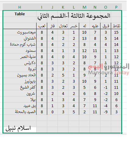 يصبح بذلك ترتيب المجموعة كالتالي بعد انتهاء الجولة الثامنة