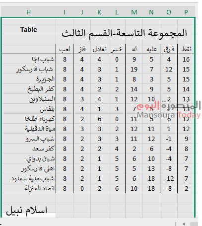 أقيمت عصر اليوم السبت مباريات الجولة الثامنة للمجموعة التاسعه الدقهليه ودمياط بسبع مباريات أسفرت نتائجها على النحو التالي