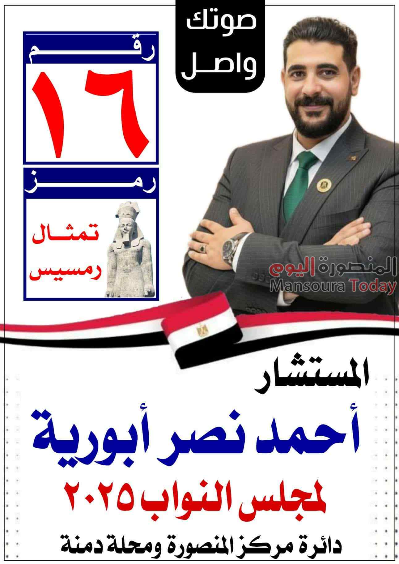 برز اسم الاستاذ احمد نصر ابوريه اسم واعد صاعد بقوة في عالم السياسة بمحافظة الدقهلية ، حيث اعلن عن ترشحه في انتخابات مجلس النواب عن دائرة مركز المنصورة ومحلة دمنه، رقم ١٦ رمز تمثال رمسيس ،ليصبح من اهم مرشحي دائره مركز المنصوره ومحله دمنه .