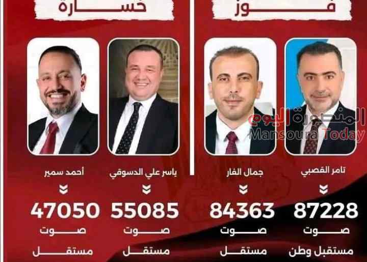 اسفرت جولة الاعادة في دائرة مركز المنصورة ومحلة دمنة عن فوز تامر القصبي مرشح حزب مستقبل وطن ، وجمال الفار المرشح المستقل
