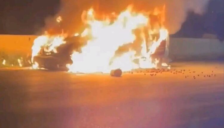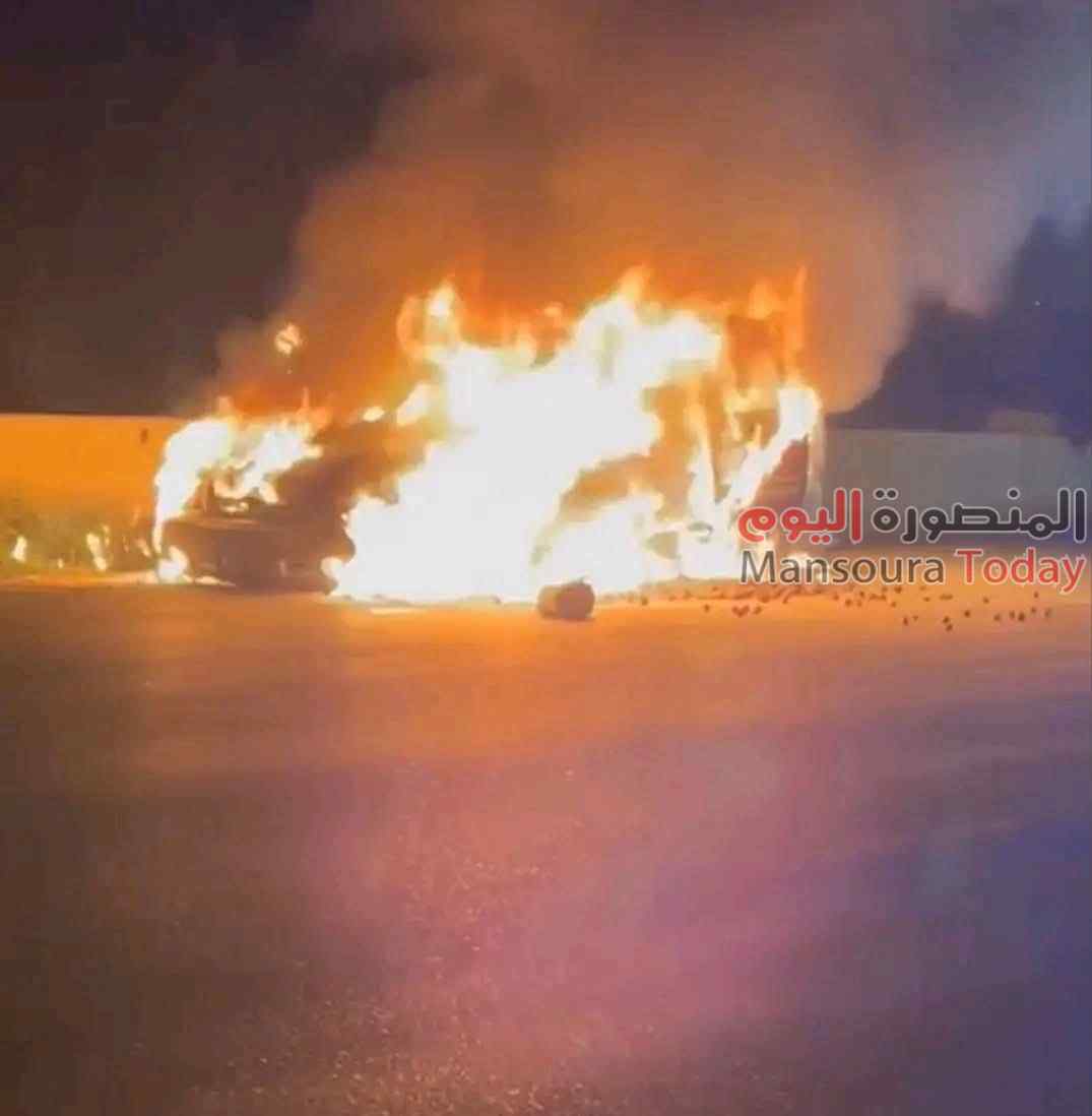 نشب حريق في سيارتين بشارع الجيش أمام شارع الهدى والنور بالمنصورة بمحافظة الدقهلية.