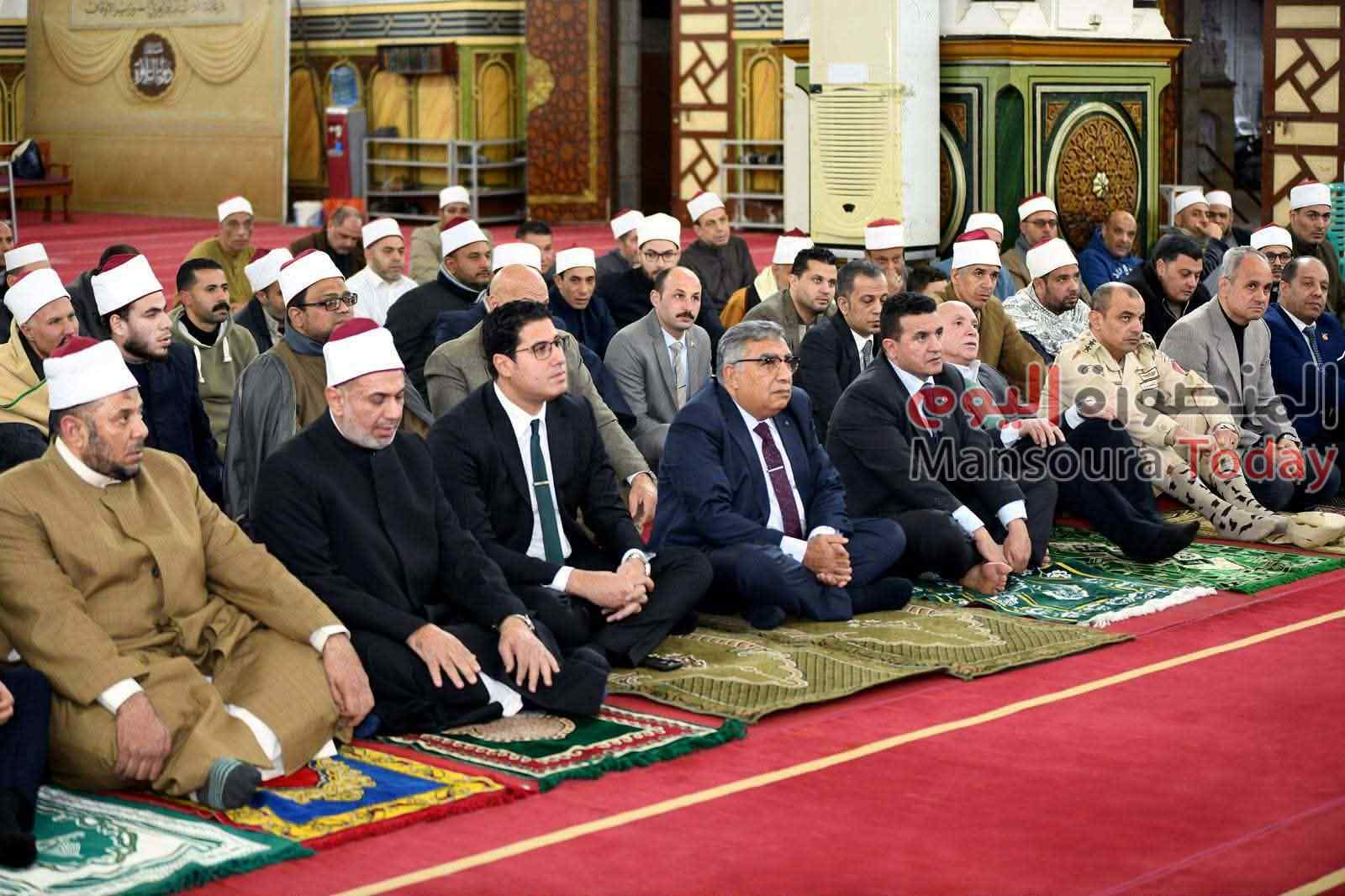 وبحضور لفيف من مديري المديريات الخدمية ورؤساء المراكز والمدن والأحياء، وأعضاء مجلسي النواب والشيوخ، وقيادات الأوقاف والأزهر، ولفيف من القيادات الأمنية والتنفيذية والشعبية، ومواطني الدقهلية.