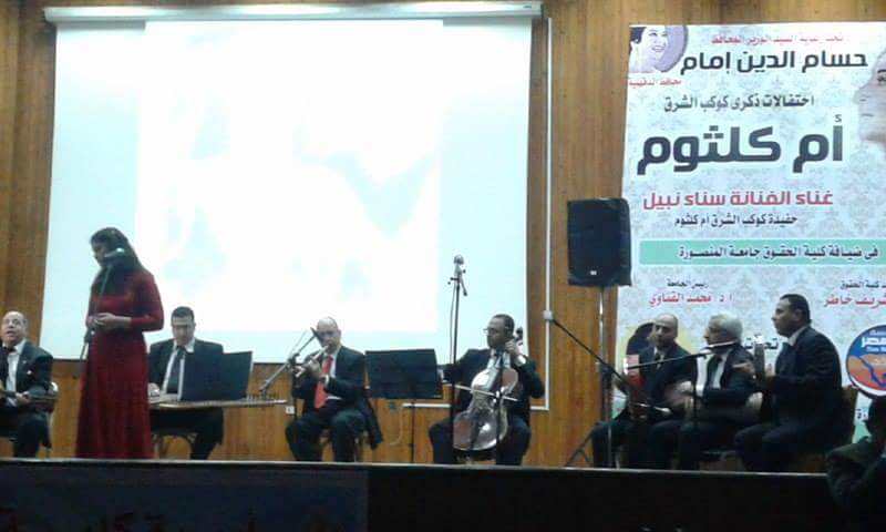 استضافت كلية الحقوق جامعة المنصورة، احتفالات ذكرى كوكب الشرق أم كلثوم، تحت رعاية حسام الدين إمام محافظ الدقهلية.