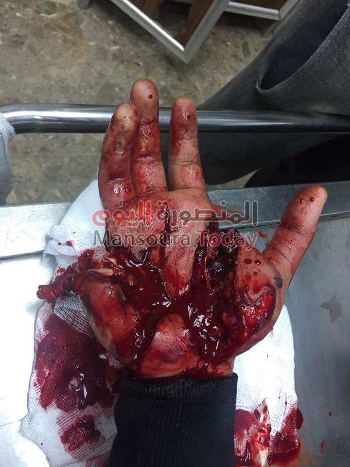 حيث تلقى اللواء مصطفى النمر مدير أمن الدقهلية اخطارا من مدير مستشفى الطوارئ بالمنصورة يفيد وصول طالب مصاب بانفجار في يده اليمنى،