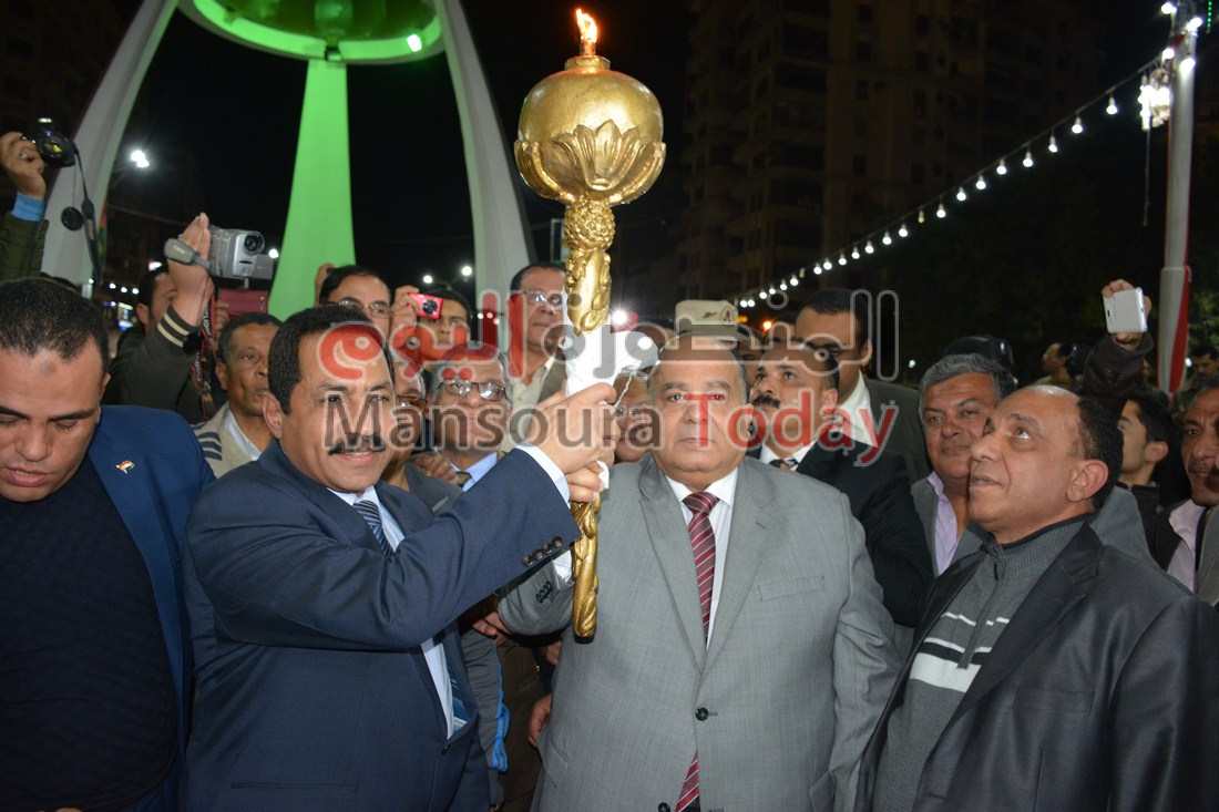 بالصور..محافظ الدقهلية يوقد الشعلة ويعطي إشارة البدء للإحتفالات بالعيد القومي للمحافظة