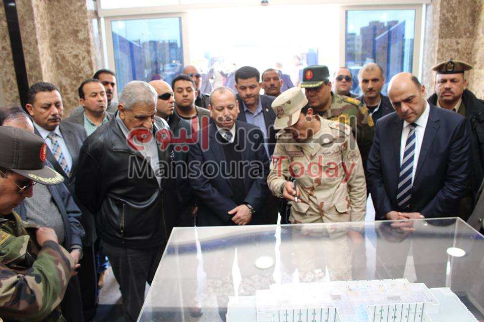 وكان في استقبالهم لدي وصولهم الي المستشفي اللواءطبيب عصام القاضي مدير اداره الخدمات الطبيه بالقوات المسلحه حيث تفقد مستشاري رئيس الجمهورية ومحافظ دمياط أقسام المستشفى المختلفة واستمعوا الي شرح من العميد طبيب طارق عبد المعز مدير المستشفي واشادوا الإمكانيات الحديثة والهائلة والمتميزة للمستشفي كما اشادوا بانشاءاتها وتجهيزاتها الحديثة التي تزويد المستشفي بها