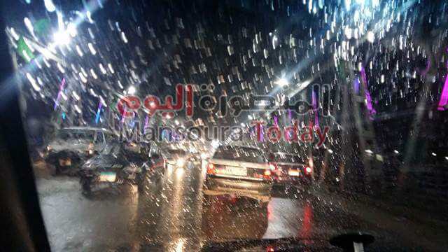 حيث شهدت مدينة المنصورة هطولا للأمطار، مع انخفاض في درجات الحرارة،