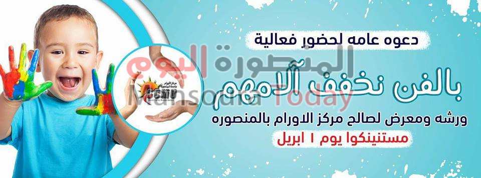 ينطلق غدا السبت معرض “بالفن نخفف آلامهم”المخصص ريعه لصالح مركز الأورام جامعة المنصورة حيث يشارك 60 فنان من أكبر الفنانين التشكليين بلوحاتهم ويخصص عائد بيعها لصالح الأطفال المرضي بالسرطان .