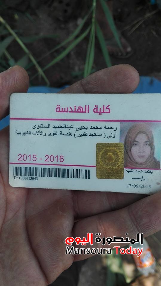 وعلى الفور انتقلت قوة امنية الى مكان الحادث وبالفحص تبين انها رحمه محمد يحى عبد الحميد الستاوى فى الفرقه الأولى كلية الهندسة ، ومقيمه كوم النور مركز ميت غمر .