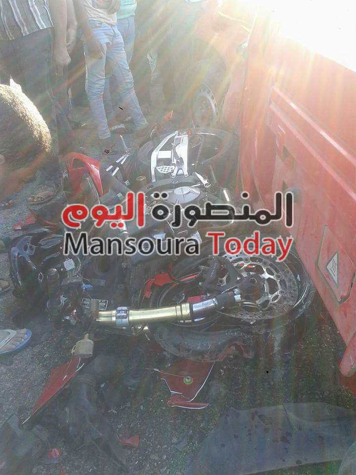 تلقي شابان مصرعهما اثر حادث تصادم موتسيكل هوندا بسيارة ربع نقل علي كوبري فارسكور بينما اصيب اثنين اخرين،