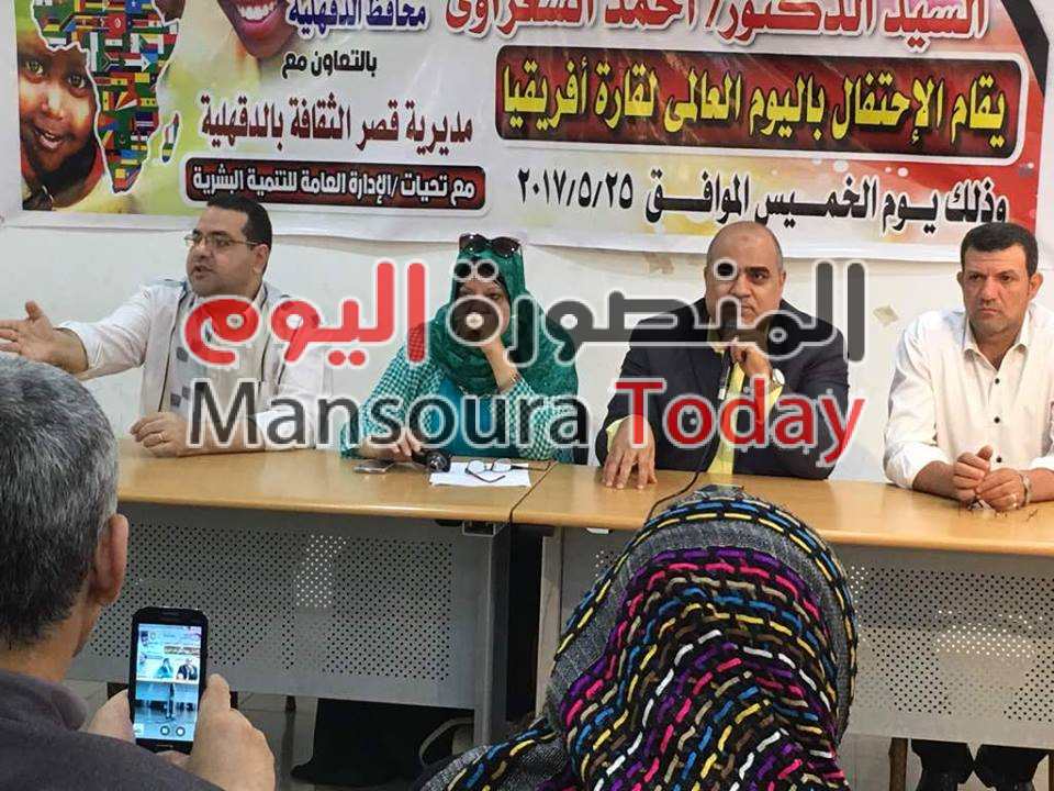 احتفلت ثقافة الدقهلية بالتعاون مع ادارة التنمية البشرية بمحافظة الدقهلية باليوم العالمي لقارة أفريقيا واقيمت ندوة بعنوان ’’ إفريقيا بين الواقع وآفاق المستقبل ’’ بقصر ثقافة المنصورة الخميس 25 مايو الجارى ،وذلك بالتزامن مع احتفالات الاتحاد الافريقي هذا العام بمرور 60 عاماً على تأسيسه فى فلك هذا الموضوع الحيوي بالدراسة والبحث والتحليل، ويمكن من خلالها دراسة نماذج مختلفة للتحالفات الصاعدة وعلاقاتها بإفريقيا وما يمكن لإفريقيا أن تبني عليه من الدروس المستفادة من هذه التحالفات من أجل تحسين الوضع في القارة، كذلك قد يبدو من المهم النظر للتجارب الناجحة من داخل القارة واستخلاص الدورس والعبر منها.