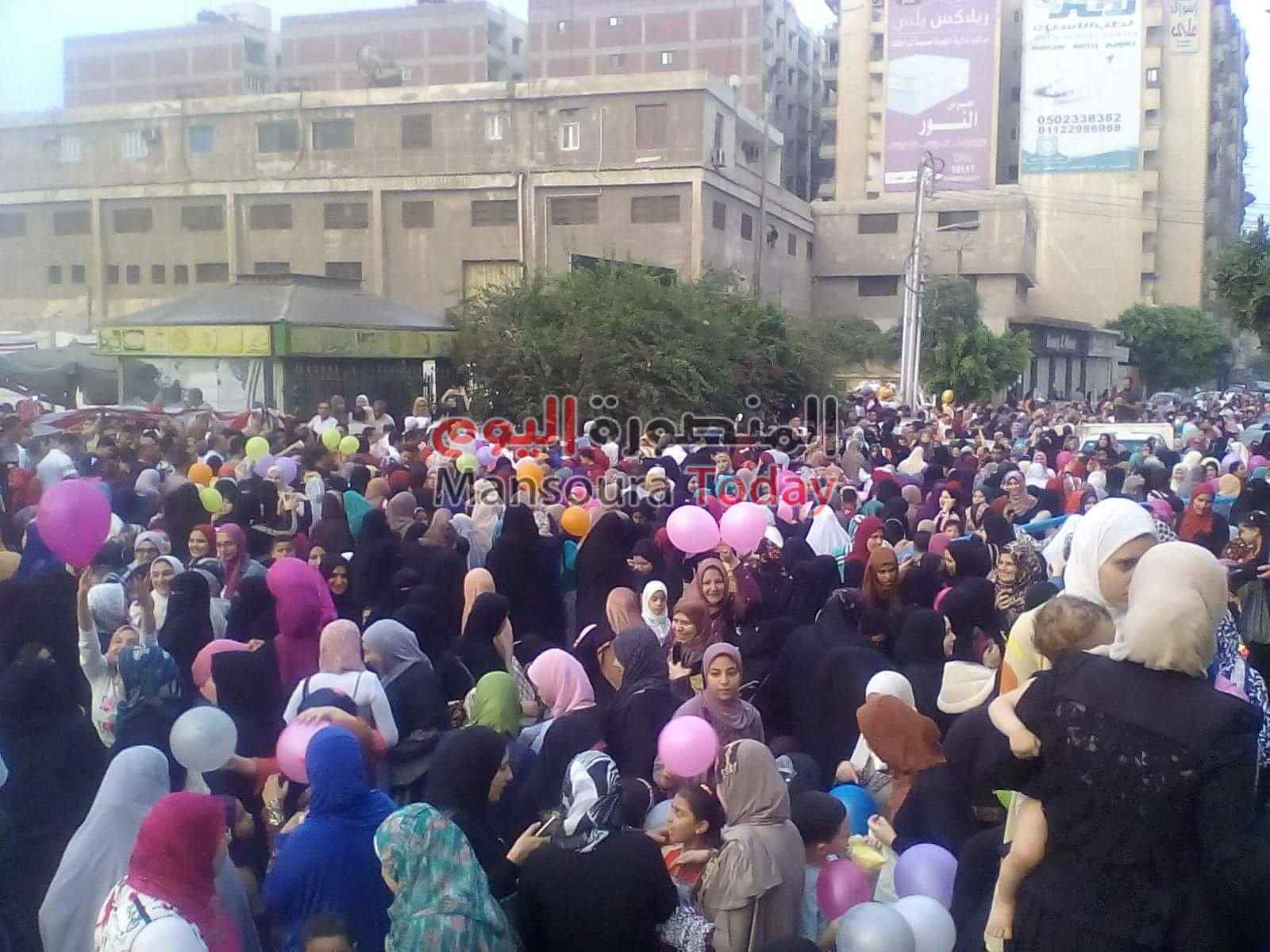 قامت أسرة بإلقاء الحلوى والبالونات الملونة، على الموجودين بساحة مول عوض الله،بمدينة المنصورة، عقب الإنتهاء من أداء صلاة العيد، أدت إلى فرحة الموجودين بالساحة.