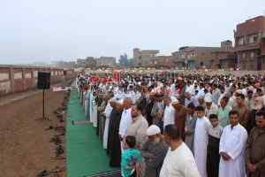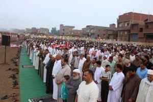 بالصور .. آلاف المواطنين يؤدون صلاة العيد بساحة ملعب مركز شباب ميت تمامة بمنية النصر
