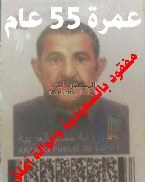 اختفى سائق مصرى فى السعودية ، يدعى رمضان أحمد عبد الله شوشة 55 سنة من قرية أبستو مركز نبروه بمحافظة الدقهلية، بعد أداء مناسك العمرة مع كفيله ، وانقطع اتصاله منذ يوم السبت الماضى حتى الآن وأغلق هاتفه المحمول .
