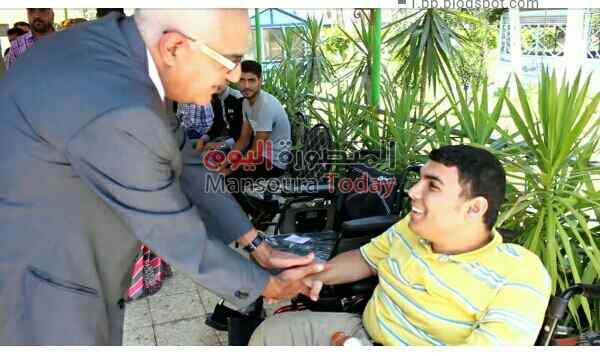 قام السيد الاستاذ الدكتور اشرف عبد الباسط نائب رئيس جامعة المنصورة لشئون التعليم والطلاب اليوم بتسليم دراجات بخارية مجهزة ،كراسي كهربائية متحركة ، أحذية طبية ، أطراف صناعية فوق الكوع الأيسر ، جهاز تثبيت للركبتين ، سماعات أذن للطلاب ذوى الاحتياجات الخاصة بالجامعه.