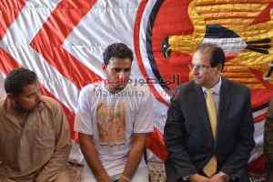 واستقبلت والدة الشهيد، محافظ الدقهلية، مرتديه علم مصر وكاب القوات المسلحة ، فيما أرتدي عدد كبير من شباب القرية تي شيرت يحمل صورة الشهيد وأسمة.