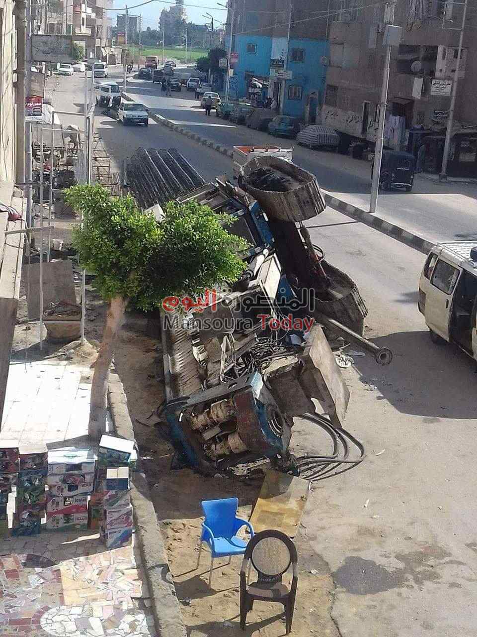 لقى سائق مصرعه إثر انقلاب حفار عليه أمام التأمين الصحى بمنطقة جديلة ، التابعة لحى شرق المنصورة .