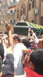 ورفض المشاركين فى الجنازة أن يركب الشيخ سيارة الإسعاف وأصروا على حملة بأنفسهم وسط تكبيرات “الله أكبر الله أكبر ، لا إله إلا الله ” وزعاريد السيدات .