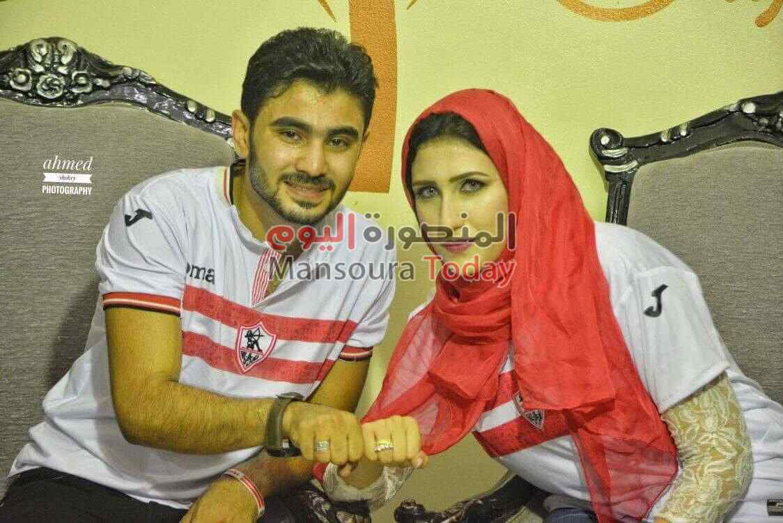 بالصور ..عروسة تعلن تشجيعها الزمالك بسبب خطيبها وتترك تشجيع الأهلى بالدقهلية