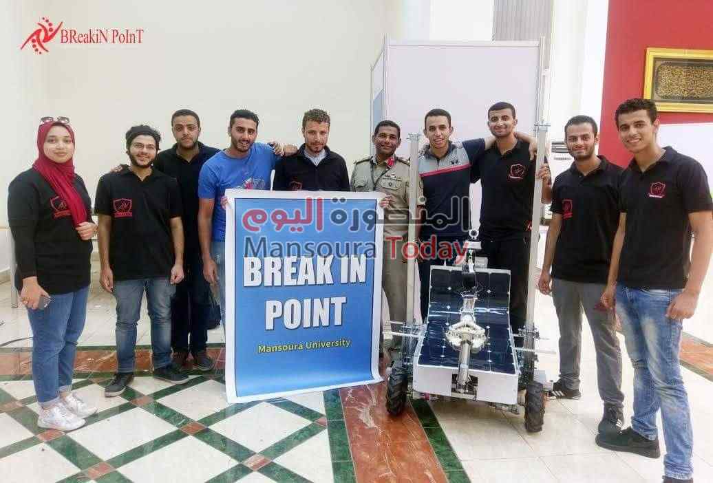 نجح فريق بكلية الهندسة جامعة المنصورة بأبتكار روبوت متعدد المهام، و قد قام فريق breakin point بالمشاركة فى المسابقة التى تنظمها الكلية الفنية العسكريه للروبوتات UGVC تحت اشراف الاستاذ الدكتور محمد السعيد عميد كلية الهندسة والاستاذ الدكتور هشام عرفات وكيل الكليه لشؤن التعليم و الطلاب .