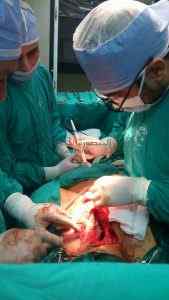 تم استئصال فص كامل و متضخم لغدة درقيه من داخل تجويف القفص الصدري بالكامل و الذي وصل الي حجم جنين من 15 – 25 سم
