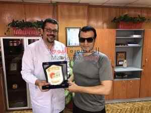و قد قام الأستاذ الدكتور محمد حجازى مدير المركز بإهداء الفنان ايهاب توفيق درع المركز تقديرا من مركز الأورام لجهوده و لدعمه المستمر لمركز الأورام جامعة المنصورة .