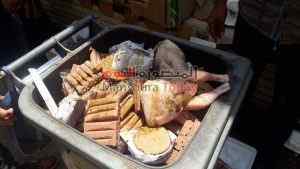 وأسفرت الحملة عن ضبط سيارة نصف نقل بصندوق محملة بكميات من الدواجن واللحوم المجمدة و بالكشف والمعاينة على ما تحتوية السيارات من منتجات ، تبين تغير فى الخواص الطبيعية ناتج عن سوء التخزين ووجود سوائل مجمدة فى الأطباق ، وتقرر عدم صلاحية المنتجات للإستهلاك الآدمي وطبقا للمادة ٢ ، ٣ من القانون رقم ١٠ لسنة ١٩٦٦ والمادة رقم ٢ من القانون رقم ٢٨١ لسنة ١٩٩٤ قررت اللجنة إعدام كميات اللحوم المتواجدة بكلتا السيارتين بمعرفة مفتش الصحة وبعد موافقة قائد السيارة القائم بالبيع .