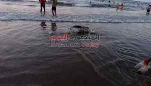 بالصور ..العثور على سمكة ضخمة نافقة بشاطئ رأس البر