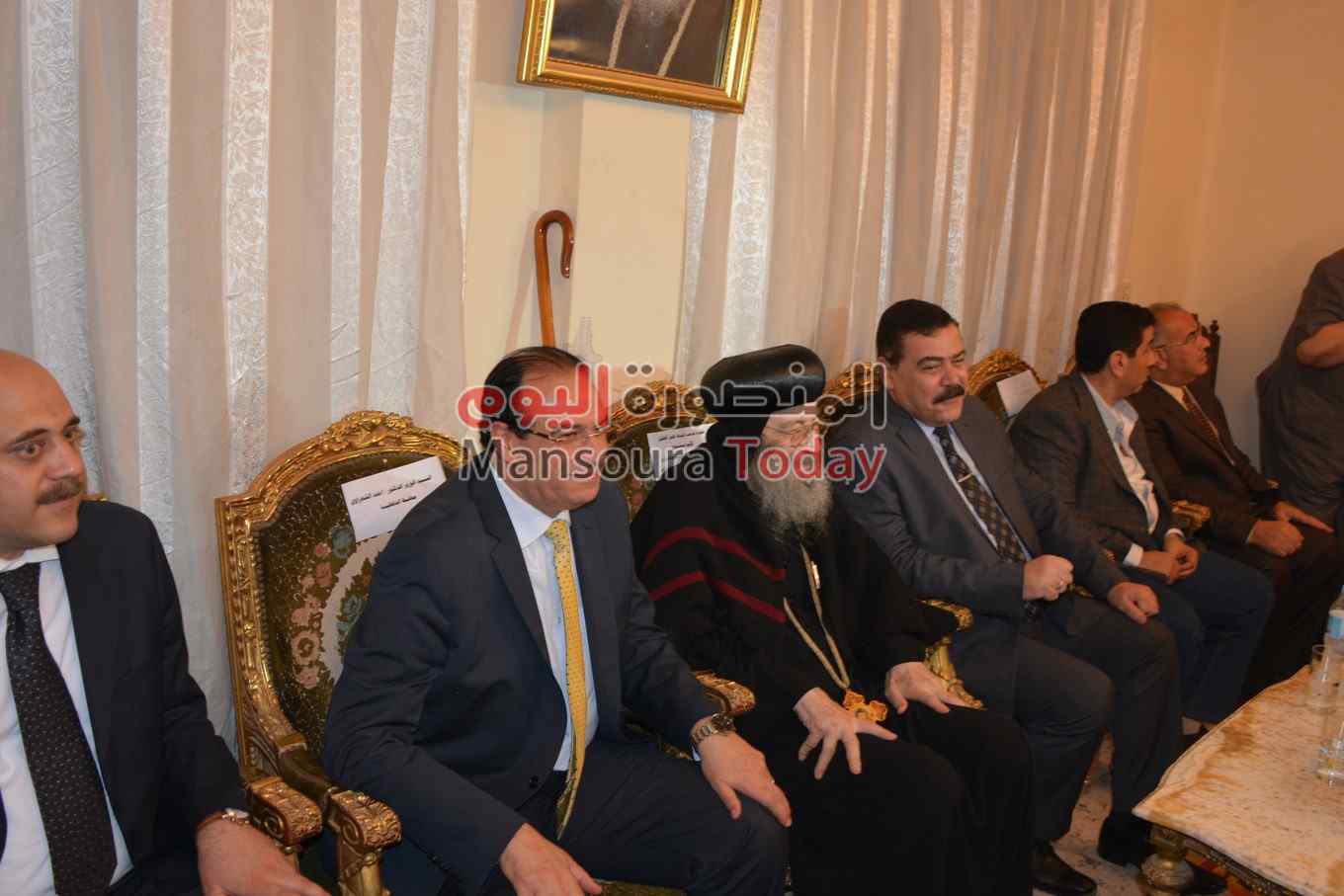 وكان في استقبال المحافظ، الأنبا بيشوي، مطران دمياط وكفر الشيخ والبراري ورئيس دير القديسة دميانة، والأنبا داوود، أسقف المنصورة وتوابعها، والأنبا صليب، أسقف ميت غمر ودقادوس وبلاد الشرقية، والقمص مكاري غبريال، وكيل دير الشهيد مار جرجس .
