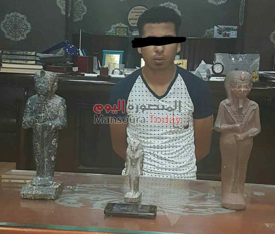 تمكن ضباط مركز طلخا من ضبط شاب مقيم بقرية كفر الدبوسى دائرة مركز شربين ، وبحوزته قطع أثرية بغرض الإتجار .