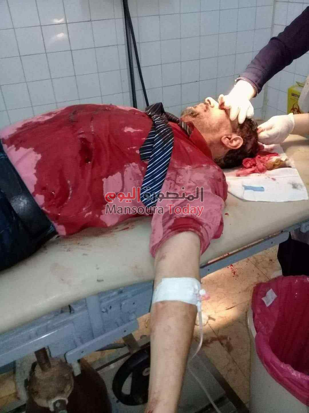 كان اللواء أيمن الملاح مدير أمن الدقهلية تلقي إخطارا بورود إخطارا ، من مستشفي الطوارئ بوصول محمد عبد الرازق موجه اللغة الإنجليزية التابع لإدارة الجمالية مطعون بعدة طعنات وحالته حرجة ، إثر تعرضه لعدة طعنات على يد الشيخ سيد م . إمام وخطيب مسجد لرفض المجنى عليه نقل زوجة الجانى إلى مدرسه أخرى لوجود عجز بالمدرسة ، فتربص له أثناء سيره بسيارته وقام بطعنه ، وتحرر عن ذلك المحضر اللازم.
