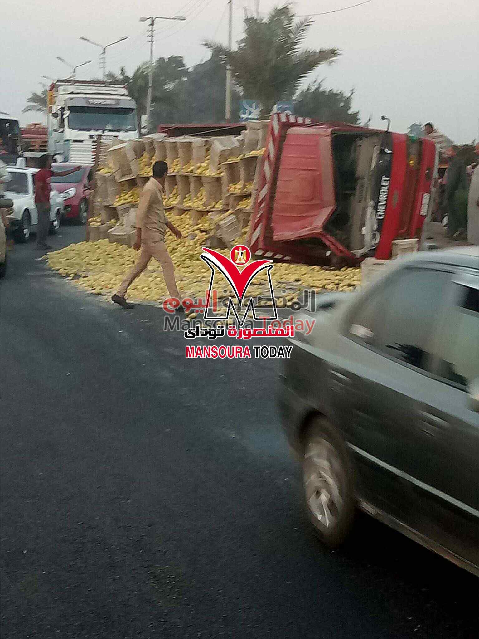 شهد طريق “المنصورة _ أجا ” انقلاب سيارة نقل محملة بـ”الجوافة ” وأتوبيس ،أمام كوبري أجا مما أدي لإغلاق الطريق وتعطل حركة المرور.