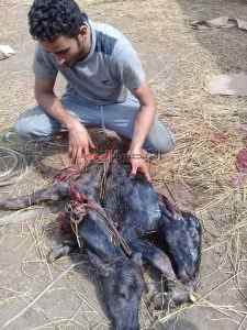 وصرح الطبيب البيطري ، الذي أجرى الجراحة القيصرية للجاموسة ، أن هذه الحالة تحدث مرة في الألف لتشوهات الأجنة وان الولادة كانت متعثرة وأخذت وقت كبير، مما اضطرهم الي فتح البطن لولادة قيصرية وتعد العملية اصعب ولادة قيصرية لجاموسة واكبر جرح قيصري، وبعدها تم إخراج المولود بعد قطعة اجزاء للحفاظ على الأم حيث ان الجنين كان توفى قبل الولاده برأسين و 9 ارجل .